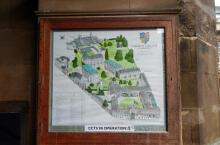After James Montagu died in Greenwich, his bowels were buried there while the rest of his body was transported to Bath where, according to his wishes, it was entombed. In his will he set aside £300, a tidy sum in those days, for the construction of a fitting memorial over his grave. A magnificent monument was erected there by William Cure and Nicholas Johnson. It portrays James Montagu reclining in his bishop's attire with a canopy overhead.